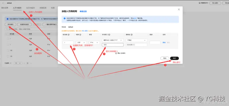 入方向上放行 3000 端口,确认配置即可。