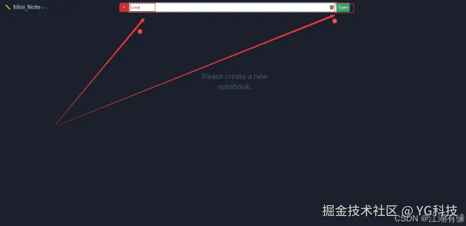 填写笔记本名称,笔记本名称自动填写即可,这里填写 Linux,,然后点击“open”选项。