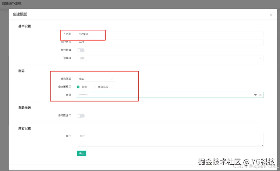填写基本信息和账号信息,账号信息就是 ssh 的用户名和密码。