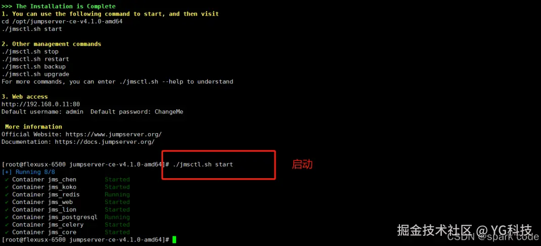 安装成功并启动 jumpserver。