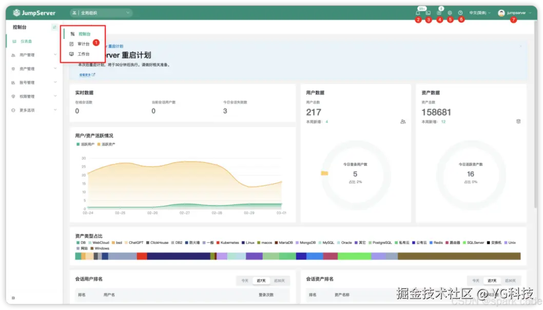 JumpServer 是广受欢迎的开源堡垒机,是符合 4A 规范的专业运维安全审计系统。JumpServer 帮助企业以更安全的方式管控和登录所有类型的资产,实现事前授权、事中监察、事后审计,满足等保合规要求。