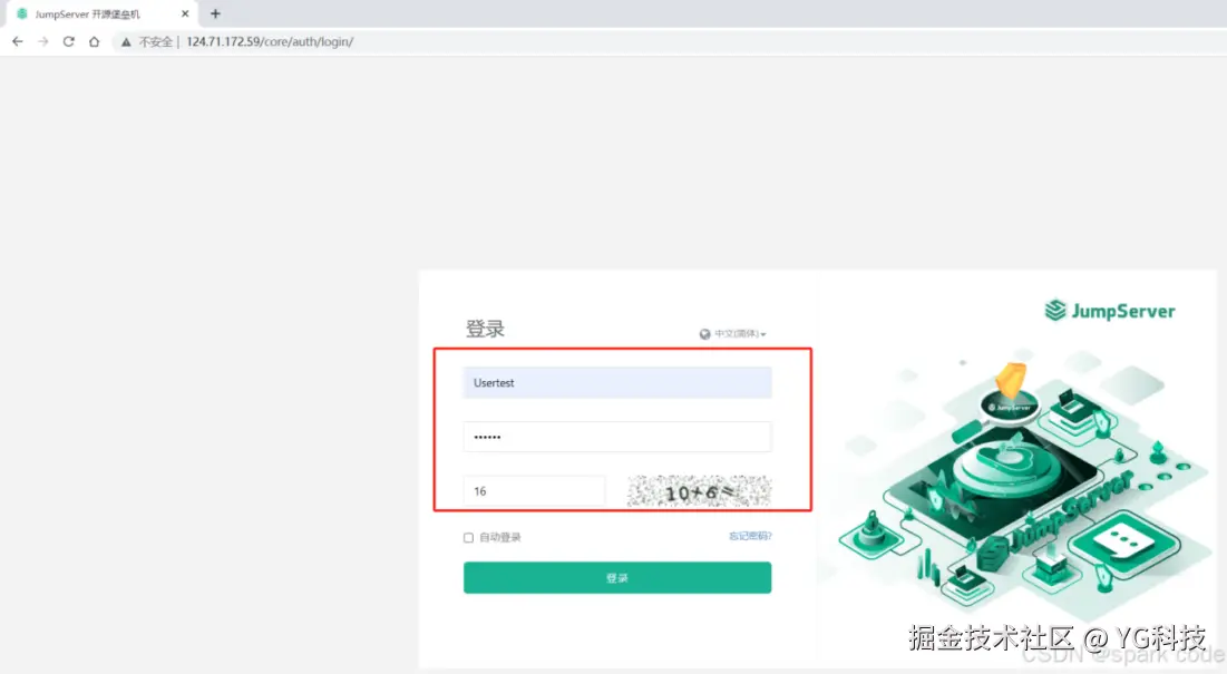 地址: http://<JumpServer 服务器 IP 地址>:<服务运行端口>