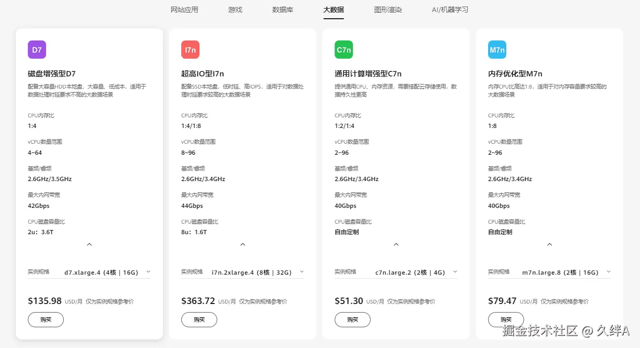 | 规格名称 | 计算 | 磁盘类型 | 网络 |