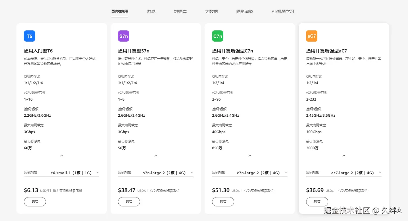 - 最大内网带宽:12Gbps | | 通用计算型S7 | - CPU/内存配比:1:1/1:2/1:4