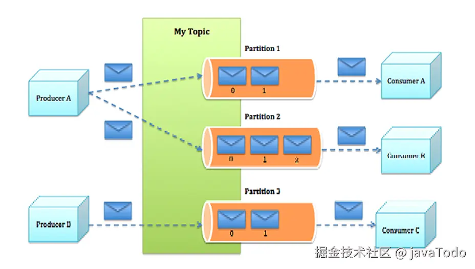- Partition:topic物理上的分组,一个topic可以分为多个partition,每个partition是一个有序的队列。