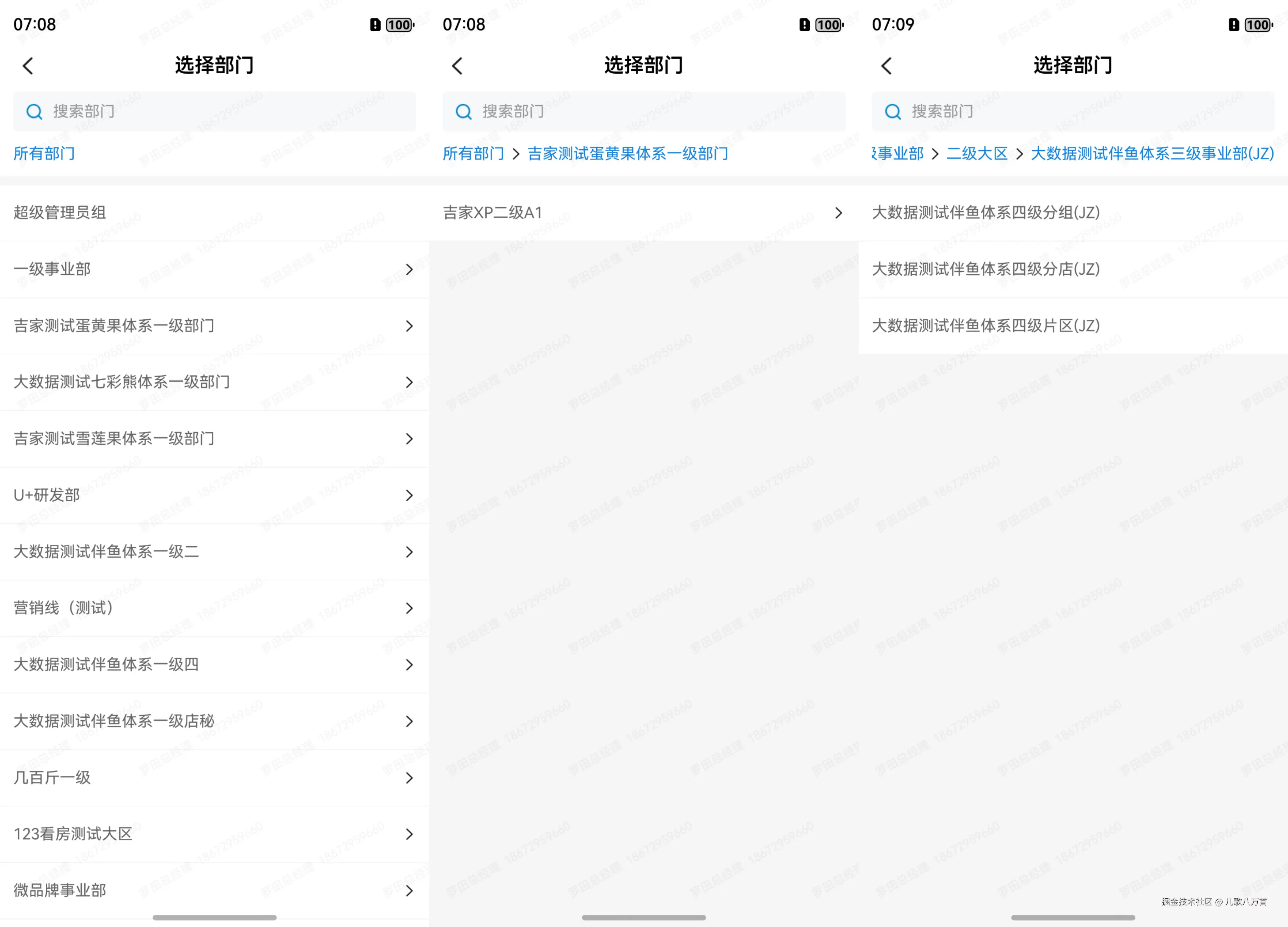 开发ERP系统的时候经常会用到部门树列表,页面主要由搜索框、顶部部门面包屑、多层级部门列表组成, 部门列表项由部门名称和下一级右边箭头组成,点击部门名称区域可以回传部门数据到上一个页面,点击下一级箭头按钮可以展示下一级部门列表,同时将父级部门添加到顶部面包屑。