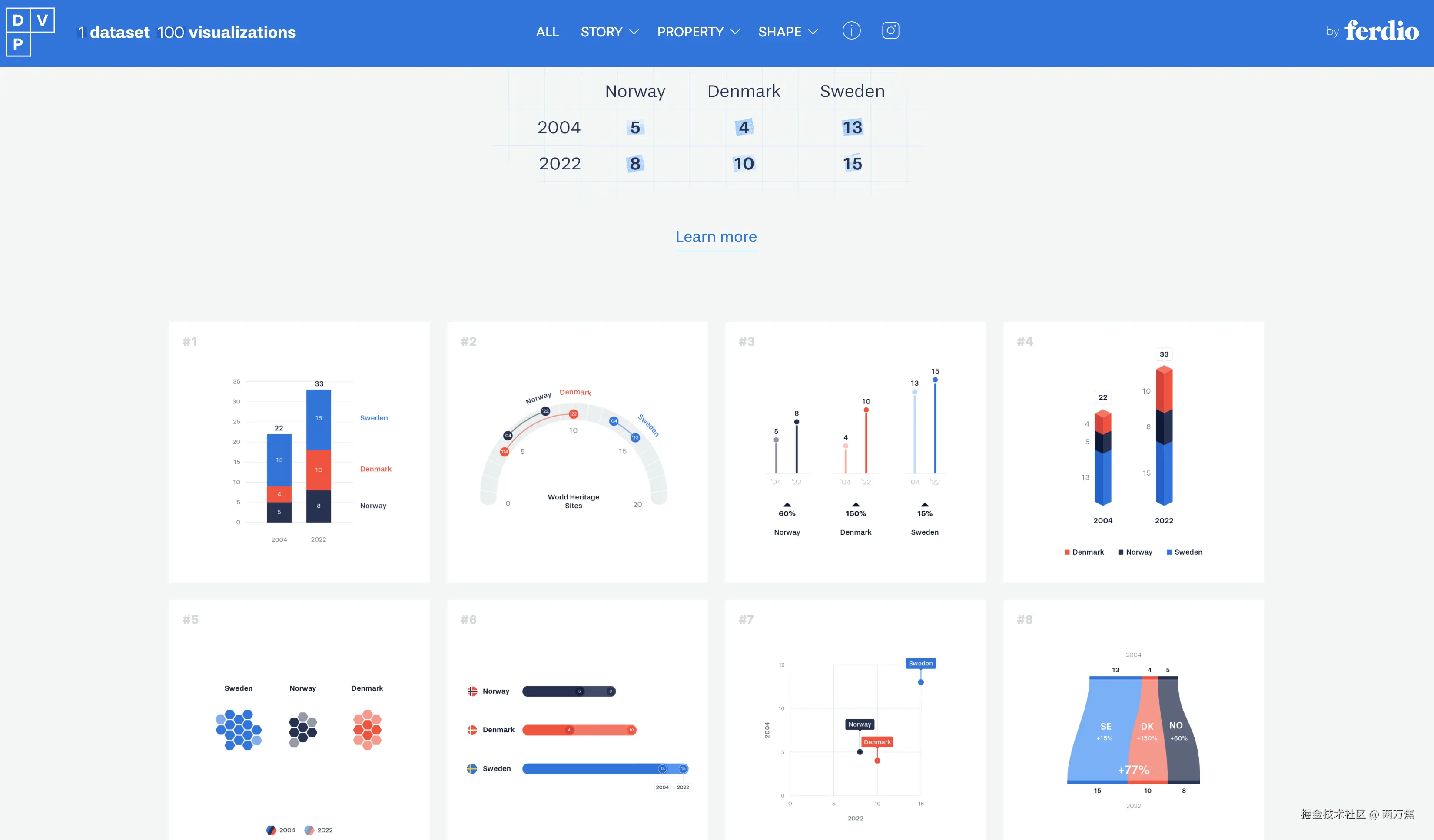 - 1 dataset. 100 visualizations.: 一组简单的数据,有 100 种数据可视化的方式,很有意思的网站