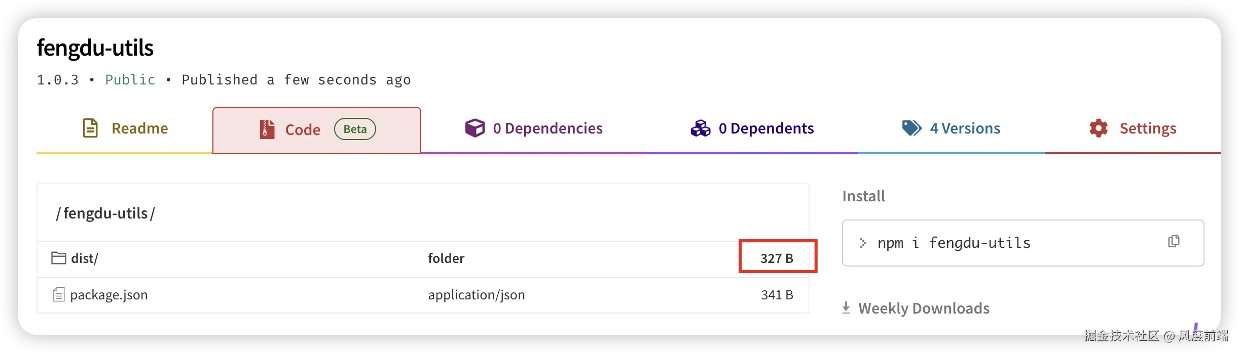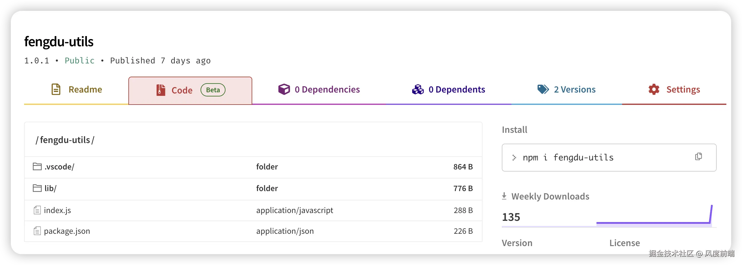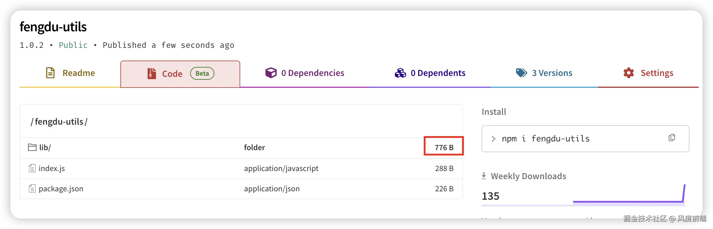 此时我们就看到上传到 npm 上的包就不含.vscode了,而且包的体积也减少了近 100B