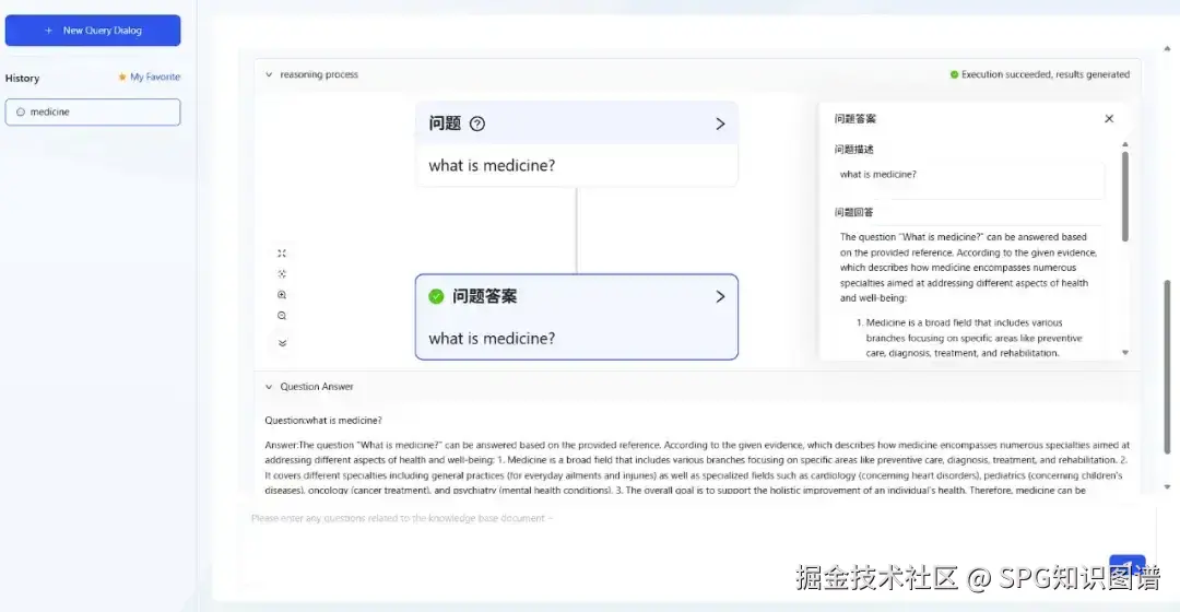 配置完成后,我进入了 KAG 的问答部分。这个功能允许直接与知识库互动,根据加载的数据获取特定的答案。