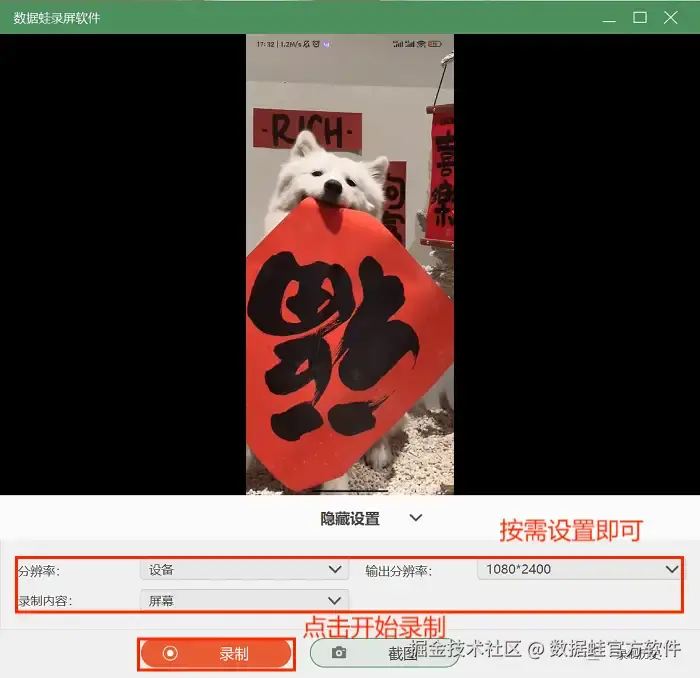 小米手机录屏功能在哪里?如果你对录屏的质量有更高的要求,或者希望在手机长时间录屏时避免手机卡顿、发烫等问题,可以考虑使用数据 蛙录屏软件。这款软件是一款电脑软件,能把手机的画面实时投屏到电脑上,并在电脑上进行录制。