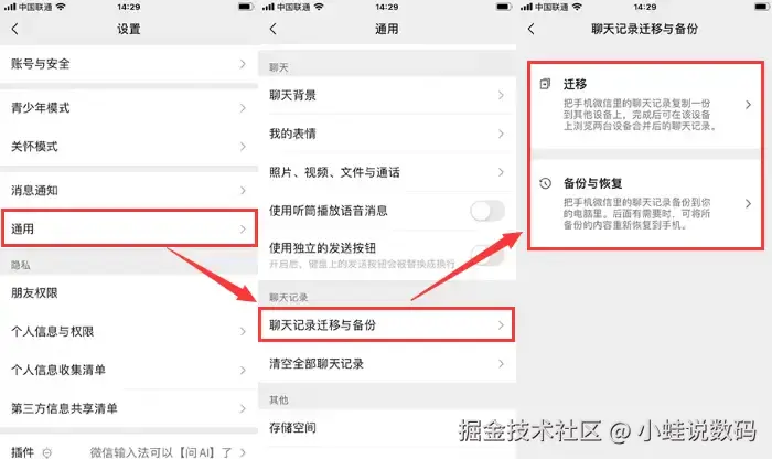 如果你有定期备份微信数据的习惯,那么也可以利用备份文件恢复被删除好友的聊天记录和联系人信息。我们需要在微信 【设置】 中找到 【聊天记录迁移与备份】 选项,按照指引操作即可。当然这个方法要有前提条件,就是依赖于之前的备份记录。