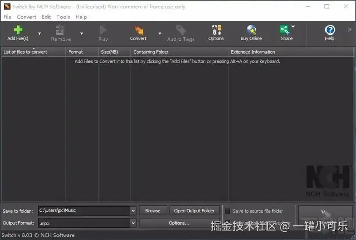 Switch Audio File Converter是另一款流行的音频转换软件,其一个显著优点是支持批量处理,这对于需要转换大量文件的用户来说是一个巨大的优势。因此,如果用户需要批量将m4a转换成mp3格式的话,可以选择该应用。然而,它的免费版本功能有限,完整功能的解锁需要购买许可证。以下是具体的操作步骤。