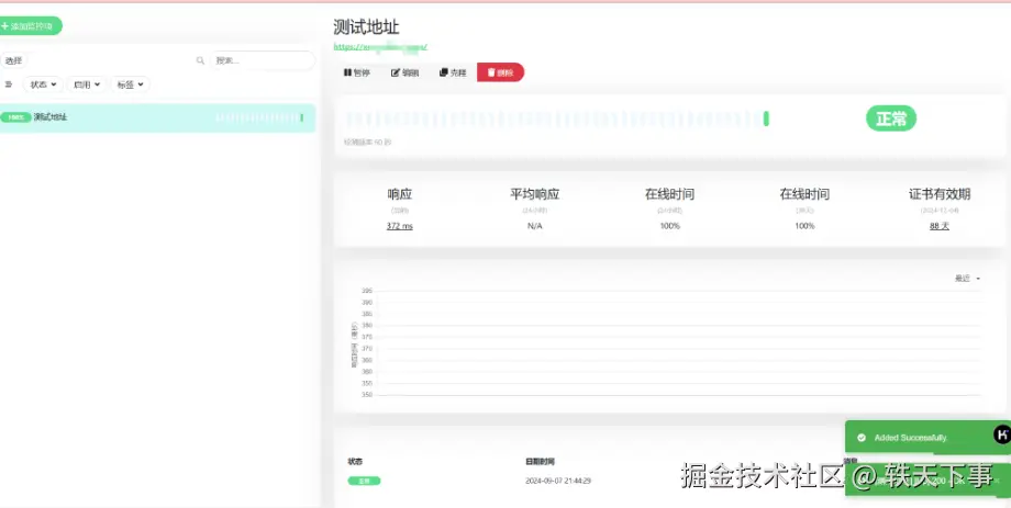 至此,我们就将 SSL 监控工具部署在华为云 FLexus X 实例的服务器中,很方便,再也不用担心忘记 ssl 忘记续签的问题啦。