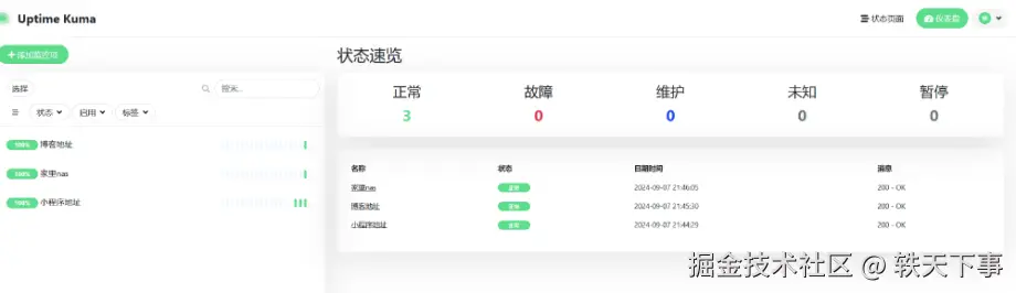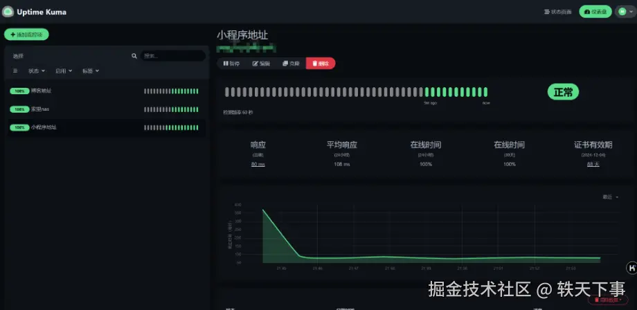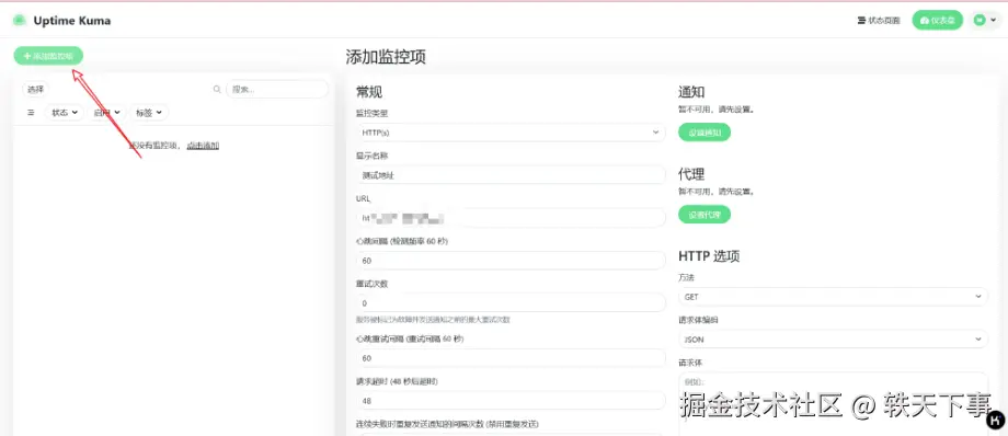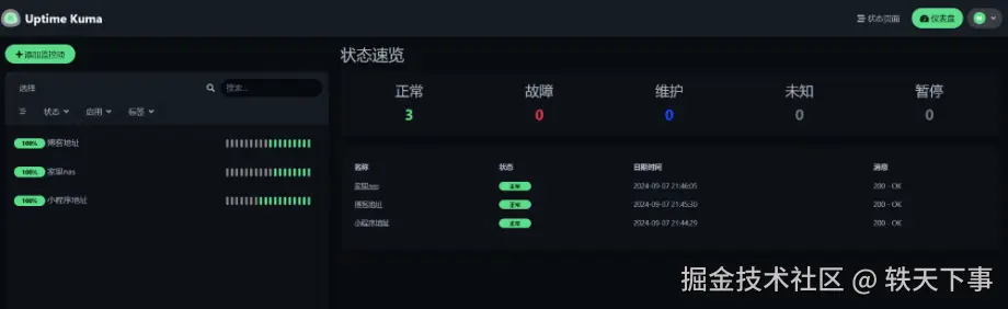 至此,已经部署完成,下面我们来看看 uptime-kuma 如何玩~
