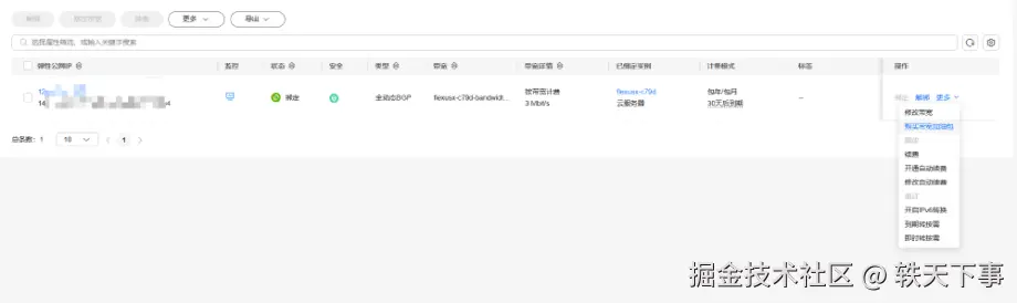 购买完成后,我们可以从控制台中找到当前服务器,查看实例的详细信息,比如公网 ip、带宽等,包括进行的一些常用操作。