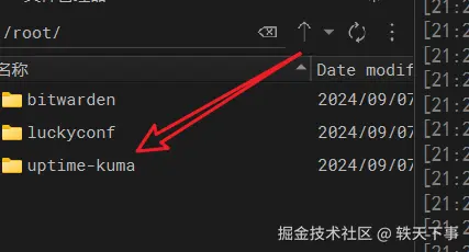 docker 部署的时候,很简单,就一条命令就完事儿了,不过,需要先在 root 目录下创建目录:uptime-kuma,然后在执行命令如下: