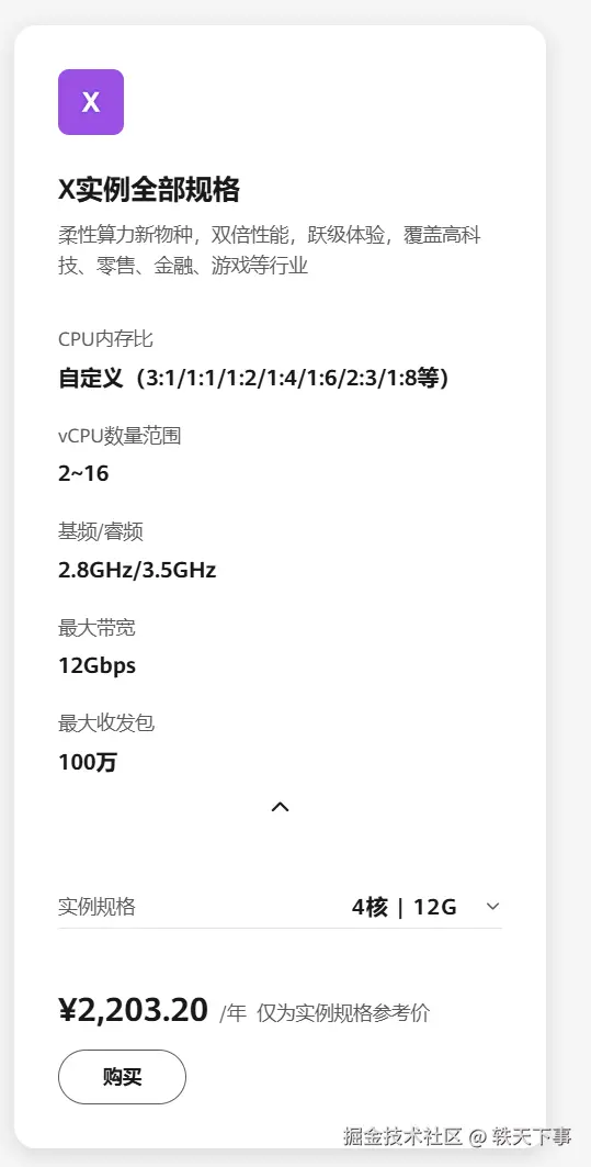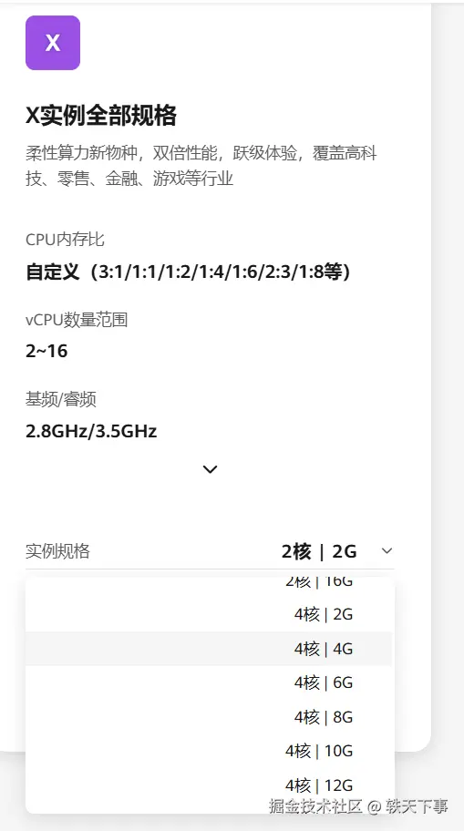 另外,还有一点必须要强调一下,其他的云服务器可能就是:我给你规定好了配置,你直接选择就行,比如 1-1,2-2,2-4,4-8,8-16,8-32 等等,只能在我规定的这里面选择,但是 Flexus 云服务器 X 实例确不一样,除了常规配置外,你也可以自定义配置!!!