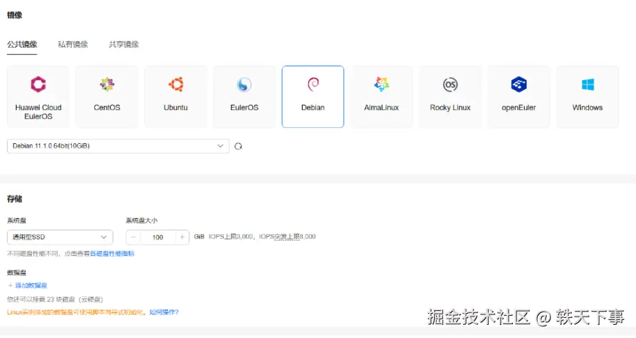 支持的镜像很多,有的甚至比较前言的镜像也都支持。我这边选择了 debain 11 的纯净系统,因为用习惯了,自从 centos 停止维护和更新后,就一直用的是 debain 系统了,占用很小,轻便,推荐服务器配置低的小白使用。
