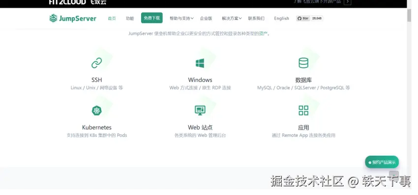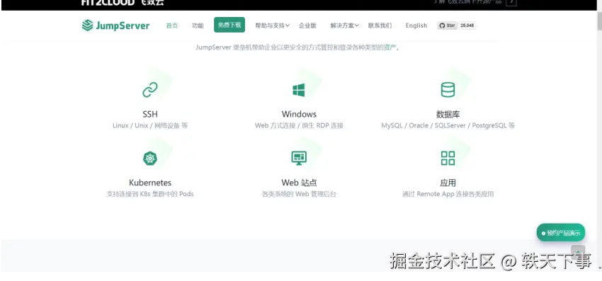 jumpserver 是杭州飞致云发布的智能化堡垒机系统,有社区免费版以及商业版。开源部署维护难度低,也不需要安装插件,直接浏览器即可使用;支持分布式部署,大规模集群部署。一套系统,可以管理 n 多云上资产,同时支持事前授权、事中监察、事后审计等安全合规要求,是很多企业的不二选择。