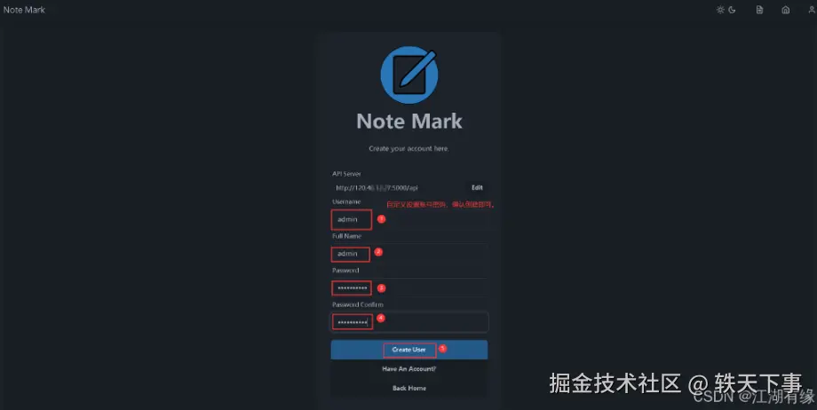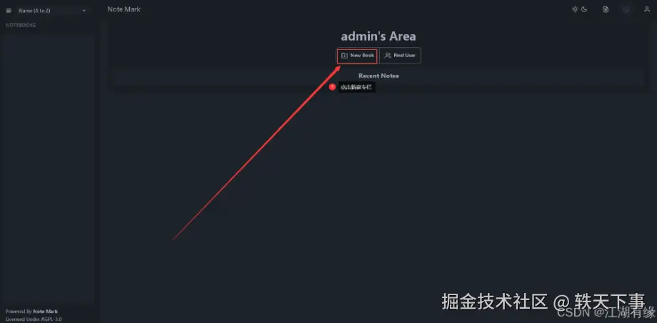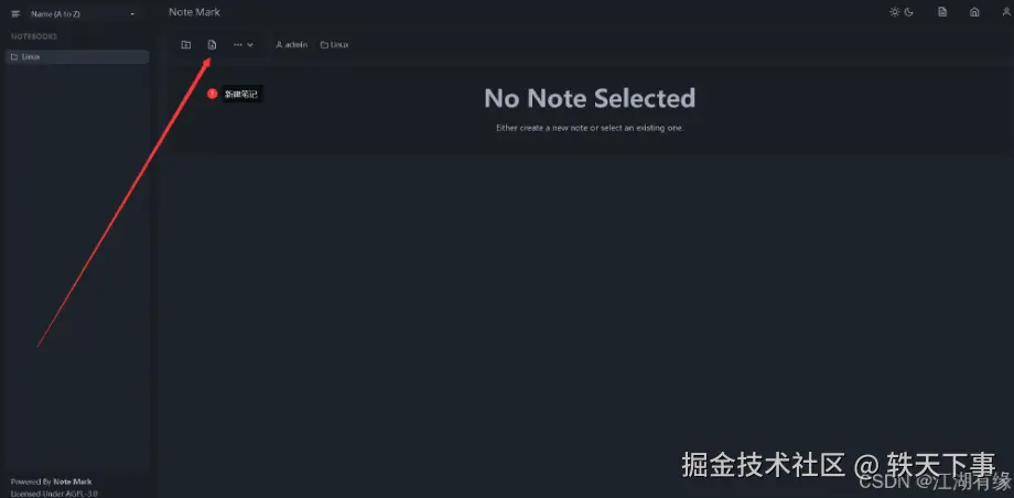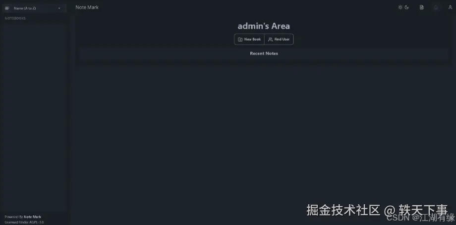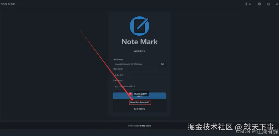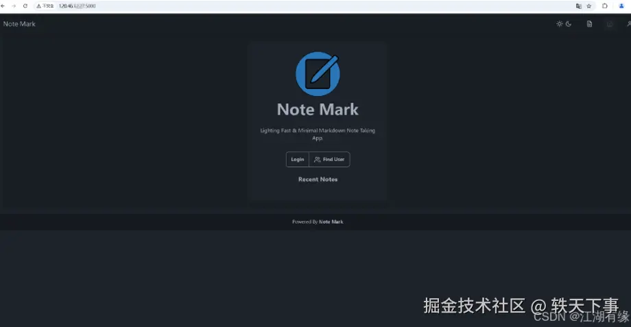 浏览器访问地址:http://弹性公网 IP 地址:5000,将 IP 替换为自己服务器 IP 地址。浏览器打开后,进入 Note Mark 初始页。