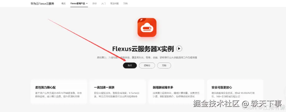 点击页面中的“购买”选项,进入 Flexus 云服务器 X 实例购买页面。