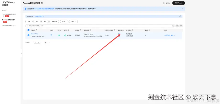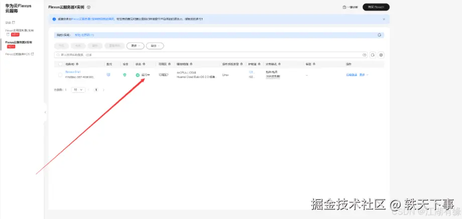 进入华为云 Flexus 云服务的控制台,选择 Flexus 云服务器 X 实例,可以看到已经正在运行的 Flexus 云服务器 X 实例。