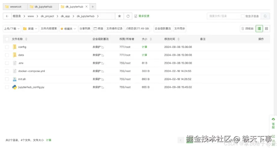 然后找到安装的数据目录,修改 jupyterhub_config.py 以配置权限