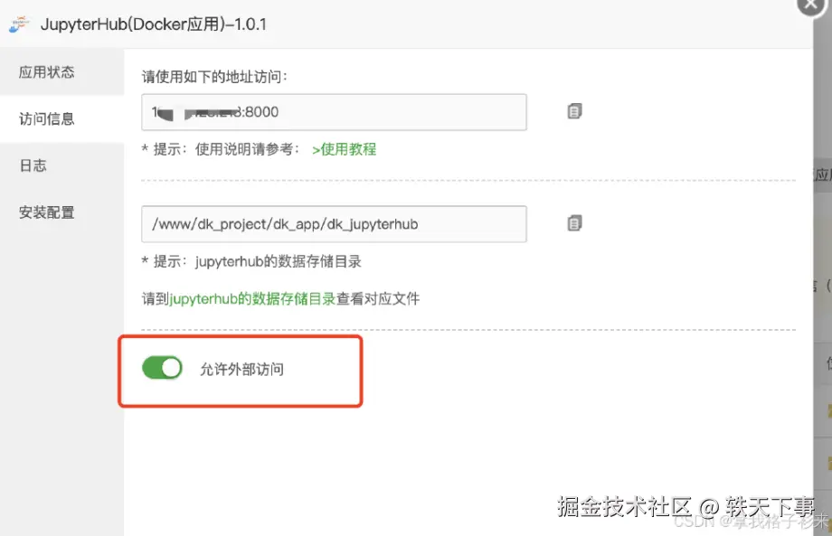 密码改成自己的,其他直接默认就好,如果你使用服务器安装了 docker,那么宝塔会优先使用 docker 来安装,如果没有安装,则在本地使用 shell 脚本来安装。安装后,需要打开外网访问,