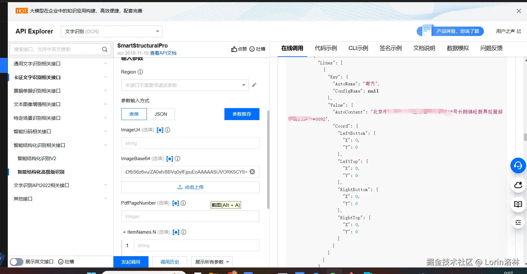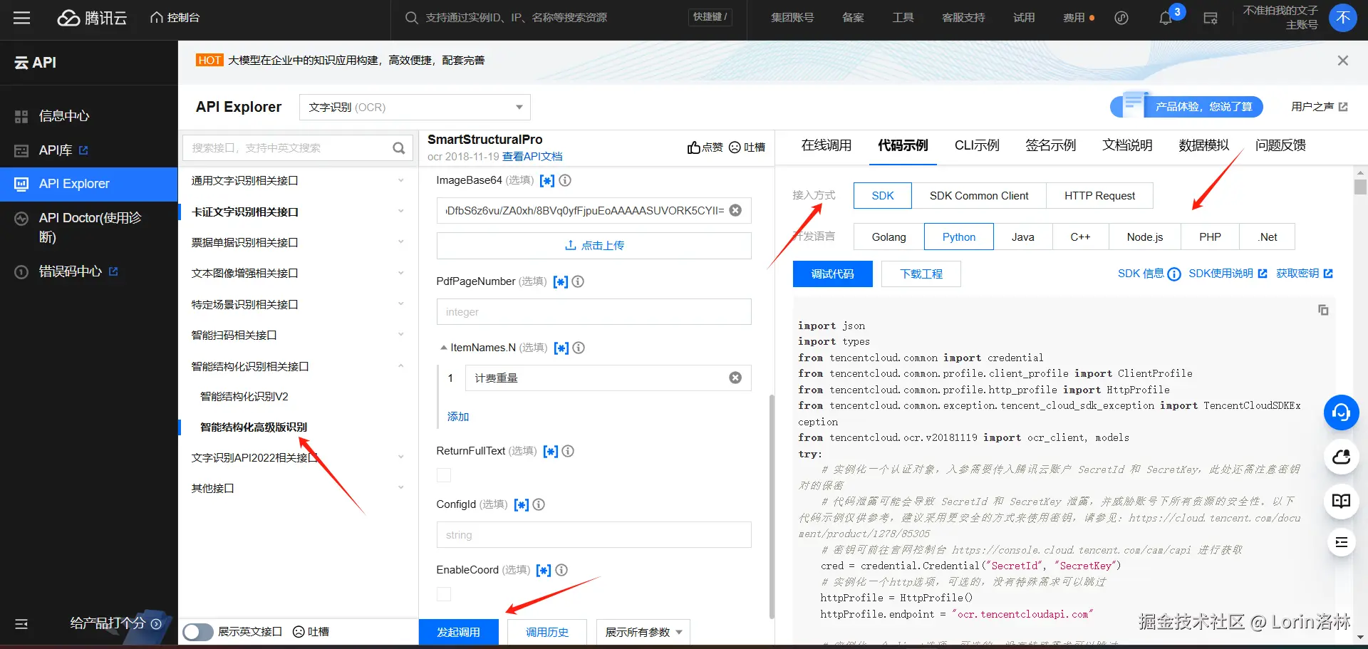 进入腾讯云控制台,找到 API Explorer > 智能结构化高级版识别。仔细一看这就是腾讯出品的专业水准: