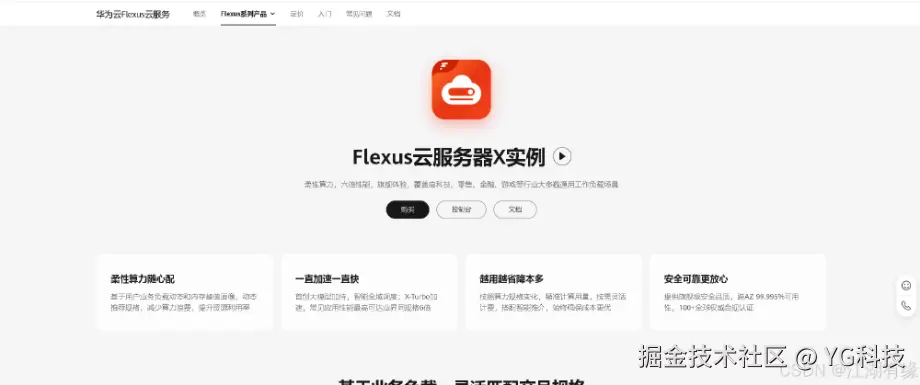 我们在华为云官网首页,精选推荐模块中,可以看到 Flexus 云服务器 X 实例,点击进入 Flexus 云服务器 X 实例主页。