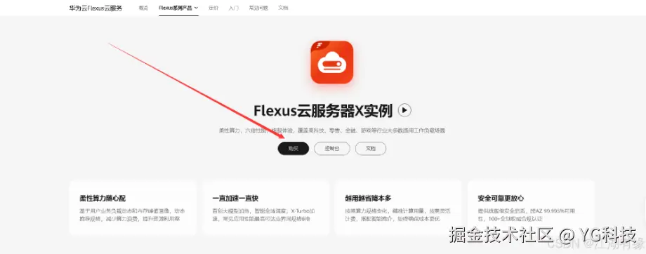 点击页面中的“购买”选项,进入 Flexus 云服务器 X 实例购买页面。