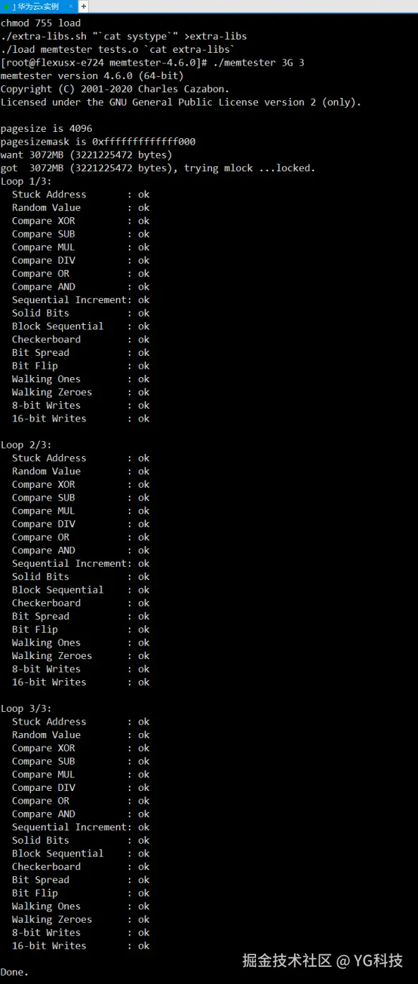 在华为云 X 实例的 Huawei Cloud EulerOS 2.0 或 CentOS 操作系统上,下载编译 Memtester 十分简单。可以通过以下命令进行: