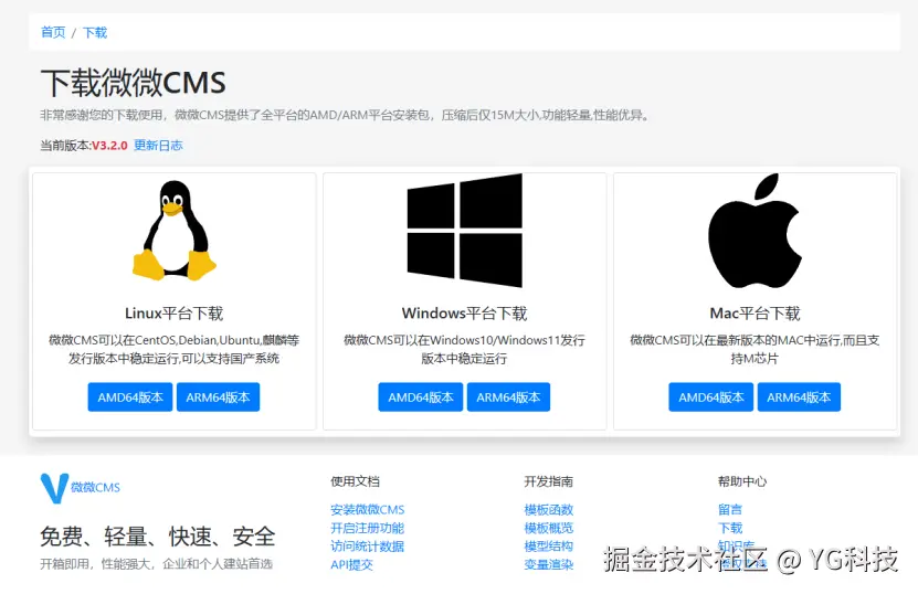 在微微 CMS 下载页面找到下载链接然后进行下载安装包