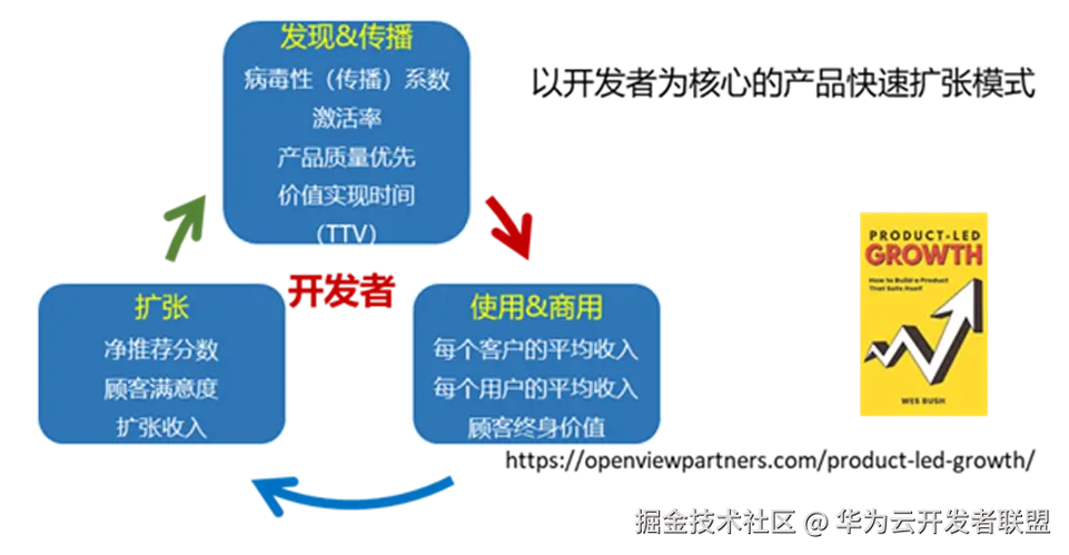 从经济模型上说,开源软件 = 低传播成本 + 传播承载体。 而这进一步发展出 Developer Focused-PLG 开发者为中心的PLG模式 ,在这个模型中,开发者成为商业模式跑通的核心纽带。