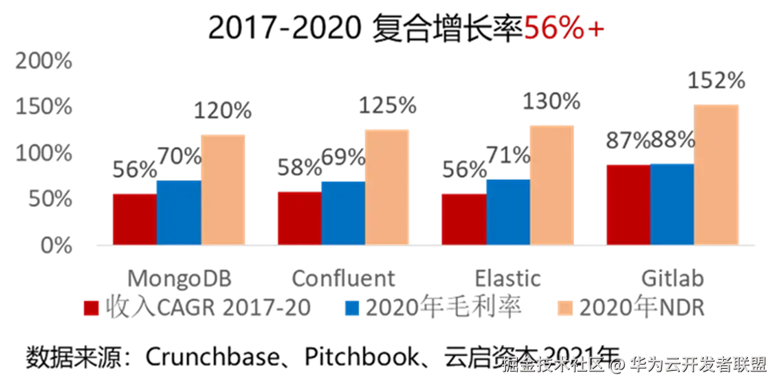 在PLG模式下,SaaS、云厂商产品可以更低成本获得客户、增长速度更快。这是资本市场对PLG青睐的核心原因。典型代表有MongoDB、Elastic、Gitlab、Atlassian、Zoom、Slack等,都有着快速增长和高估值的特点。