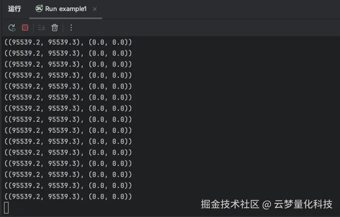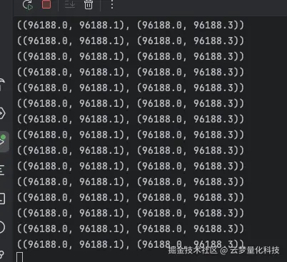 接下来我们继续运行程序, 稍等一会, 我们两个交易所的数据源源不断的推送过来