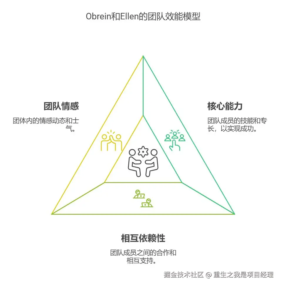 Obrein和Ellen于1986年提出了奥布雷恩与埃伦团队效能模型,广泛用于提升团队的相互依赖性和情感支持。