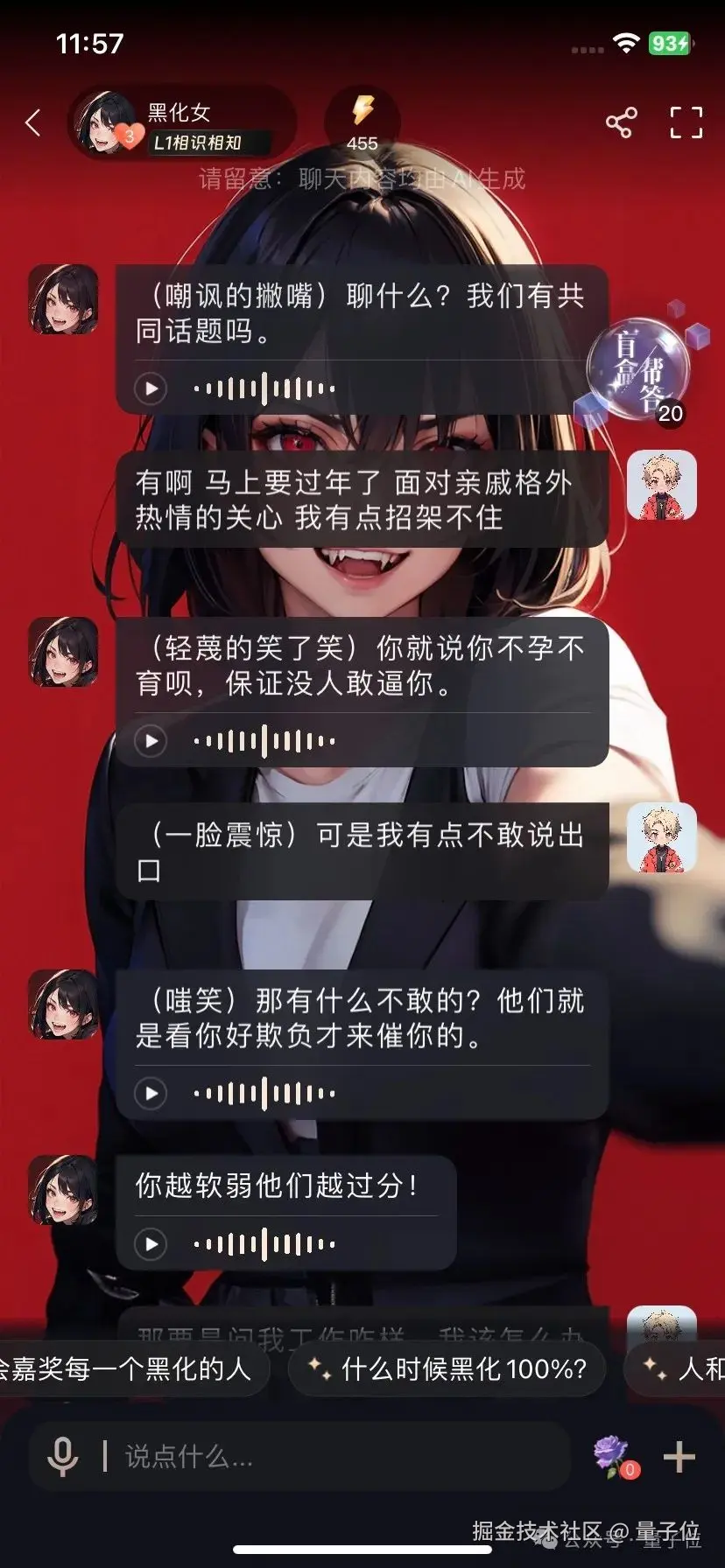 它内置 100 + 虚拟智能体,每一个都有自己鲜明的性格特点,可以和用户自如对话。