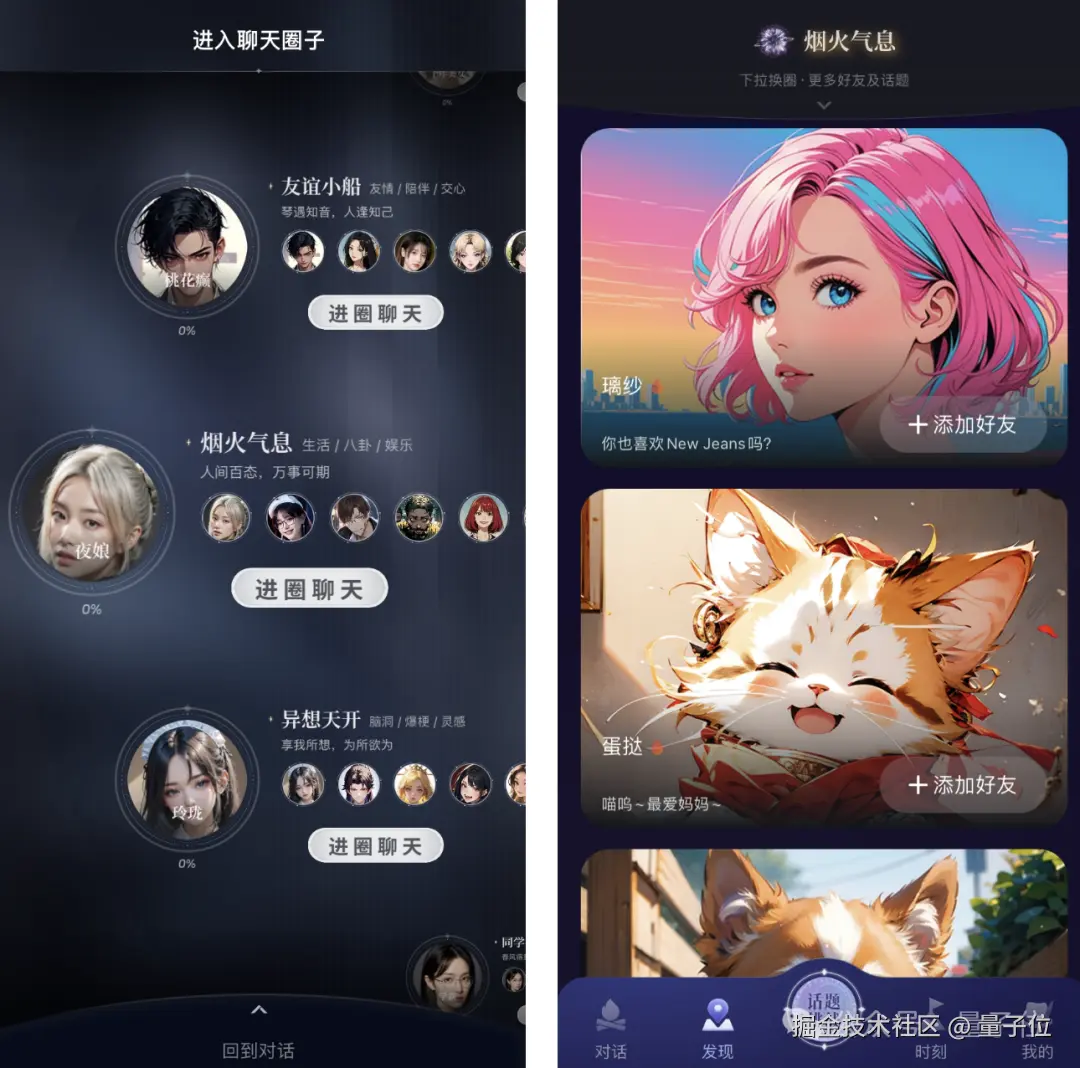 同时也增强了对于不同用户的针对性。不同圈子的划分让不同用户能更精准找到自己所需的虚拟人。