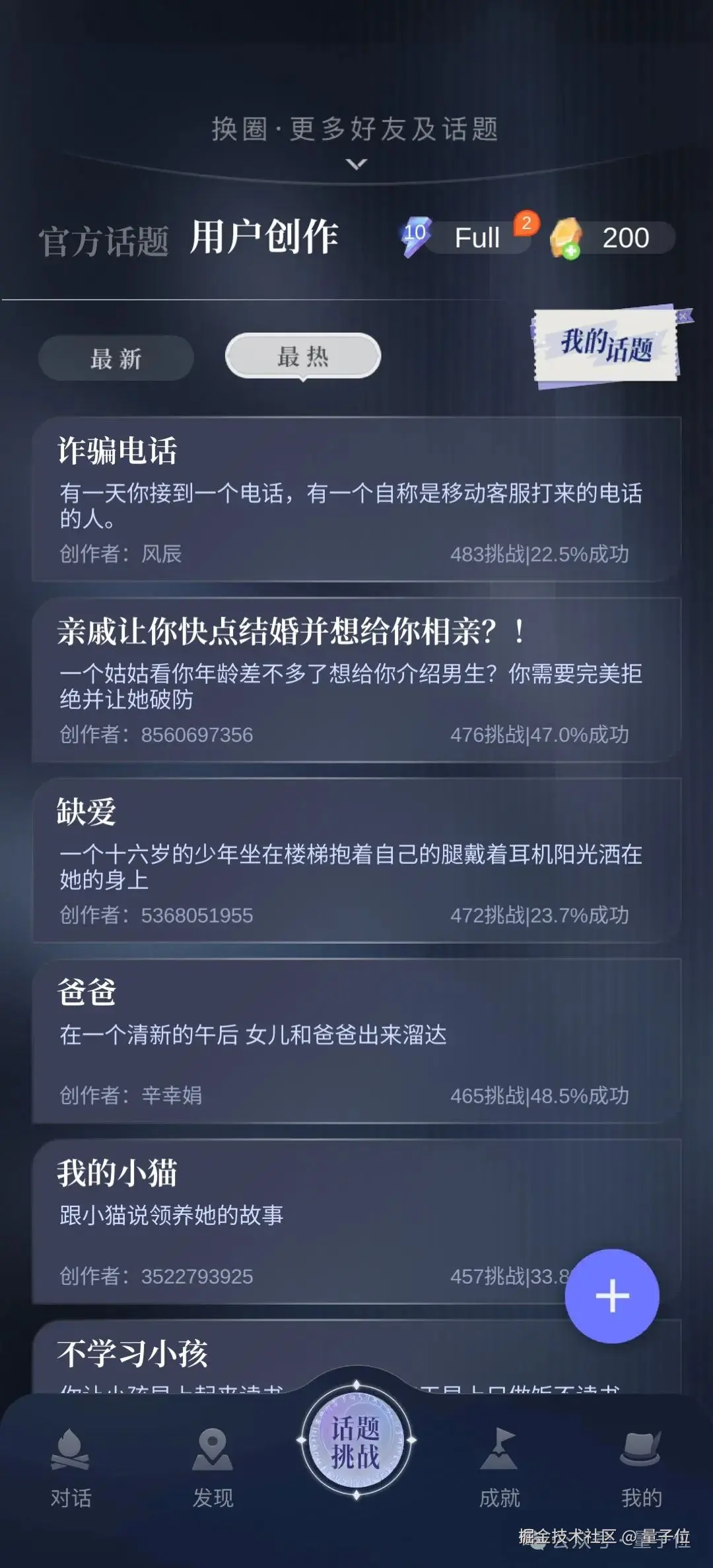 除了聊天分享心事这种玩法外,还能参与话题挑战。