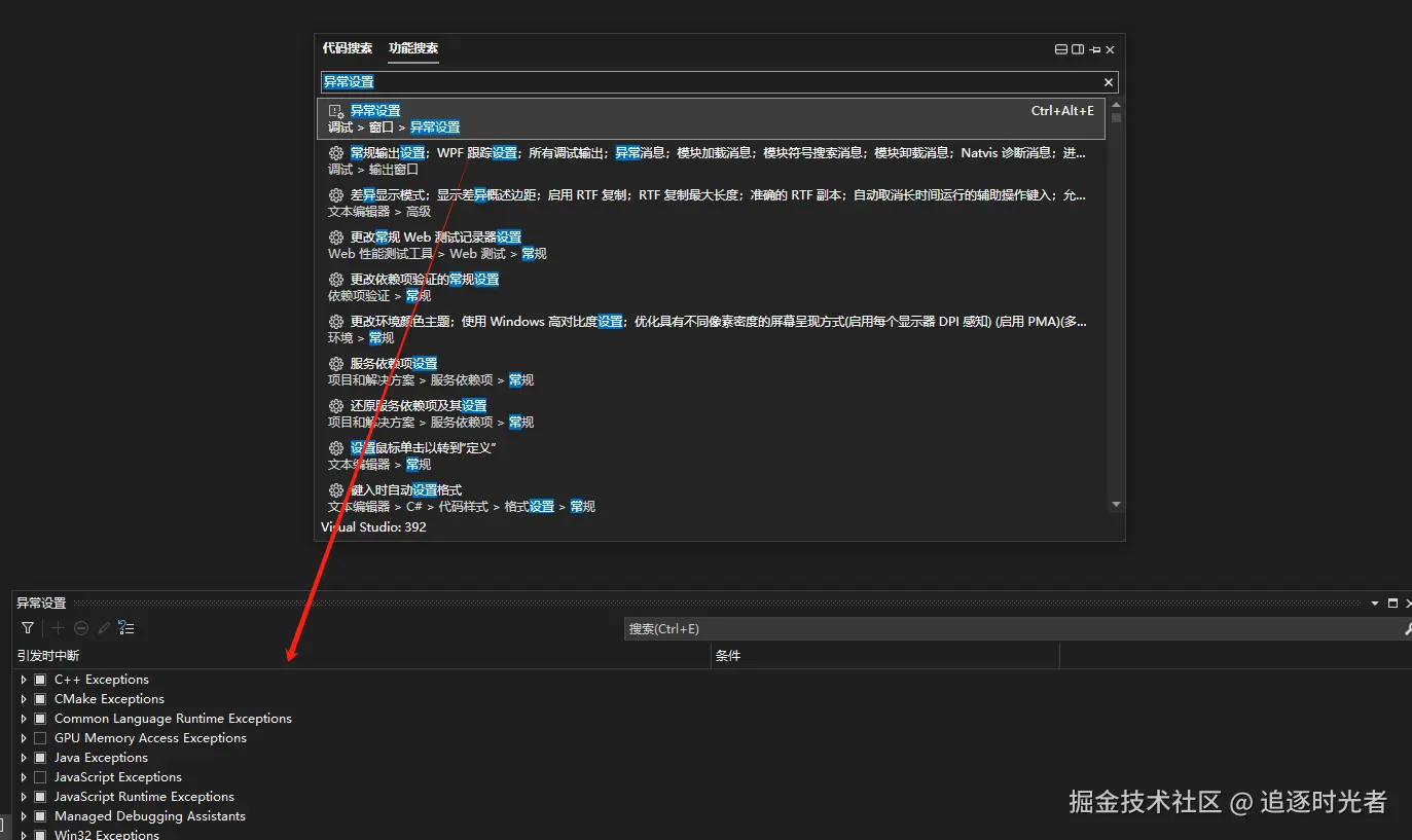 Ctrl + T 是一个非常实用的代码和功能搜索技巧,代码搜索支持:文件、类型、成员的搜索,功能搜索支持查找Visual Studio中的所有功能。