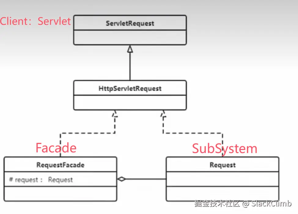 Request其实是 RequestFacade,通过 Facade 模式,隐藏了实现细节,确保安全性和封装性。