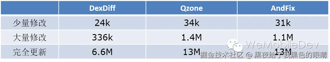 若不care性能损耗与补丁包大小,Qzone方案是最简单且成功率最高的方案(没有单独的合成过程)。相对Tinker来说,它的占用Rom体积也更小。另一方面,Qzone与Tinker的成功率当前大约相差3%左右。