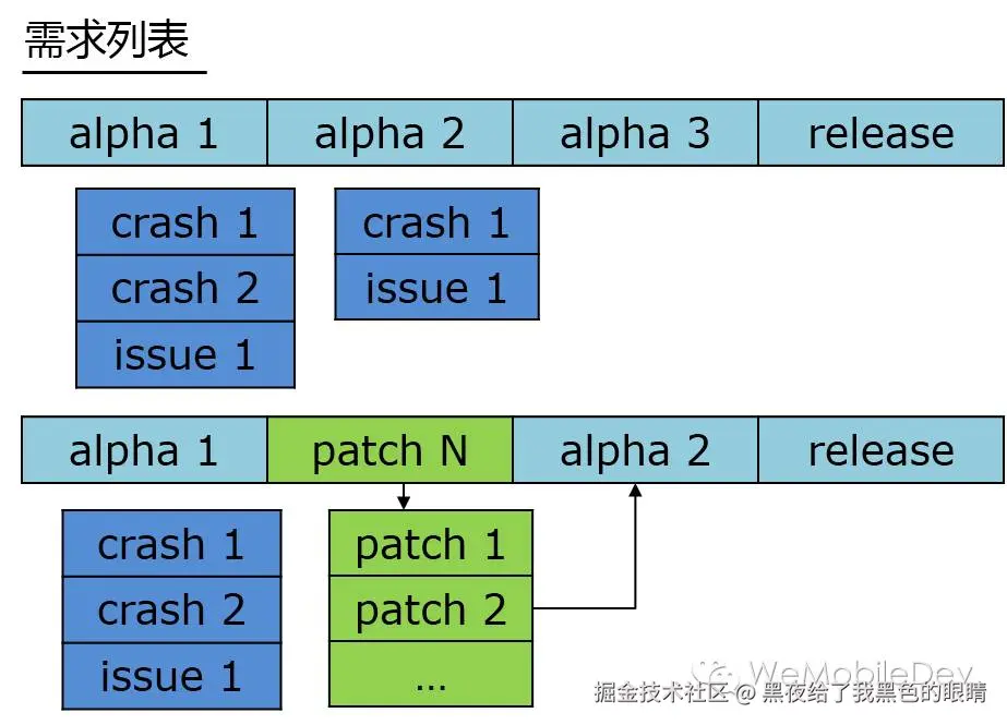 若发布版本出现问题或紧急漏洞,传统方式需要单独灰度验证修改,然后重新发布新的版本。利用补丁技术,我们只需要先上线小部分用户验证修改的效果,最后再全量上线即可。但是此种发布对线上用户影响较大, 我们需要谨慎而为。本着对用户负责的态度,发布补丁等同于发布版本,它也应该严格执行完整的测试与上线流程。