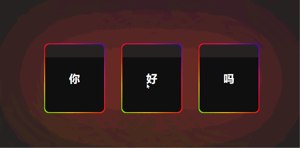 这段代码通过 CSS 动画和伪元素创建了一个具有动态渐变背景的卡片布局,背景渐变在水平方向上循环移动,营造出一种动态的视觉效果.
