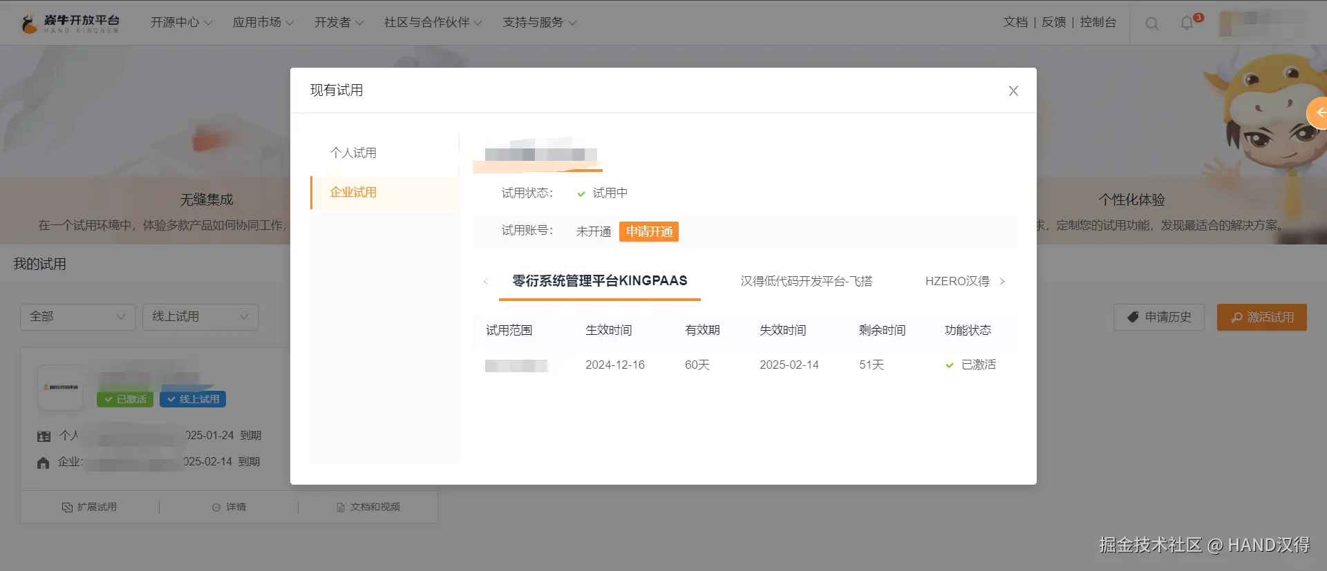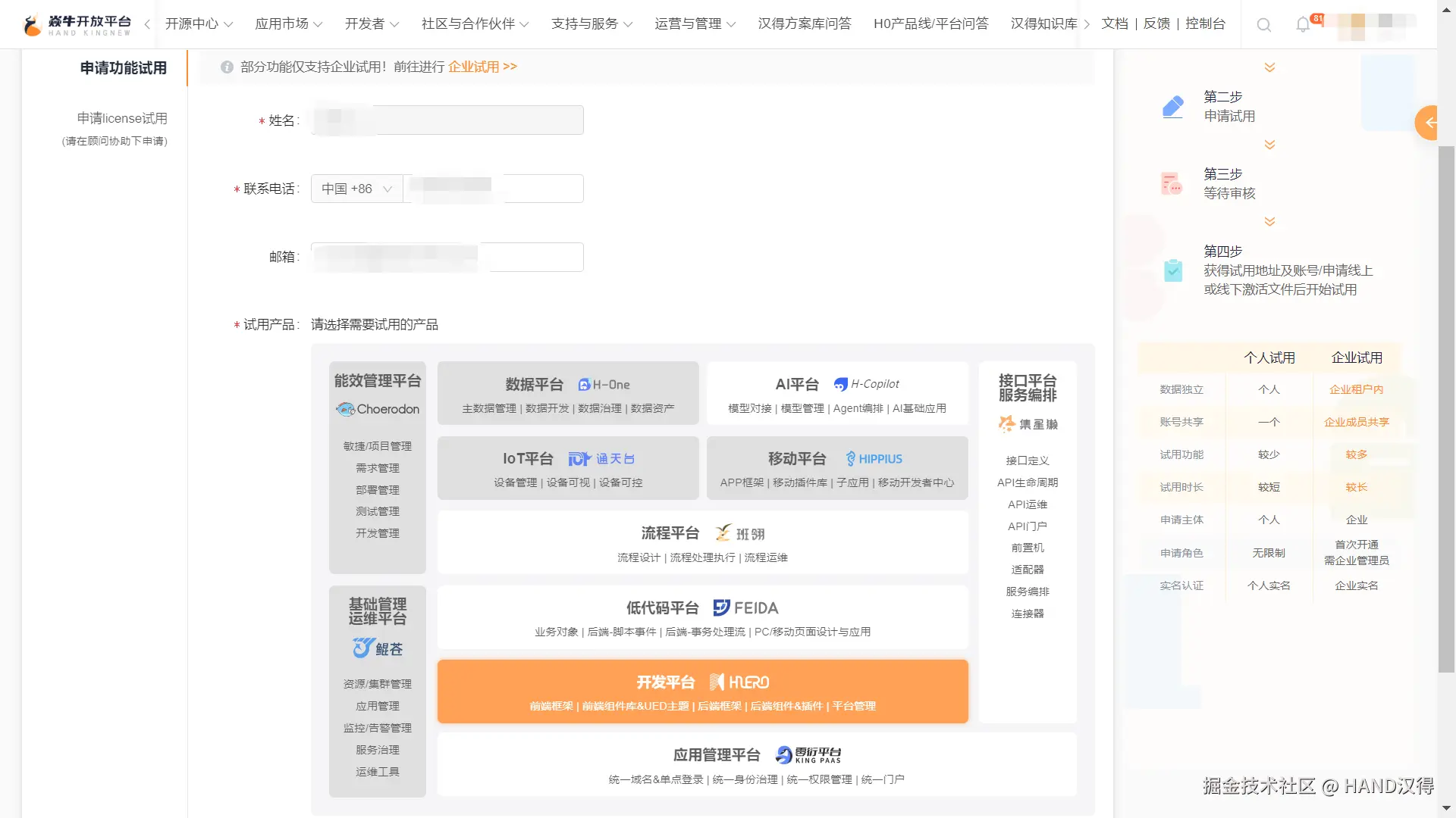 在当今数字化浪潮席卷全球的时代,企业数字化转型已成为不可阻挡的趋势。作为企业数字化转型的坚实助力者,汉得始终站在行业前沿,不断探索与创新。今日,汉得数字产品体系统一试用申请,正式在焱牛开放平台升级上线,这将为您的企业数字化探索之旅带来前所未有的便捷与价值体验!