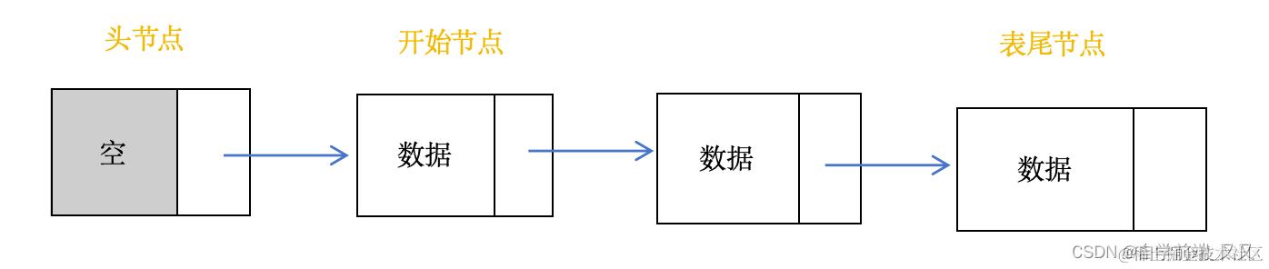 单链表:只有指向直接后继的指针。