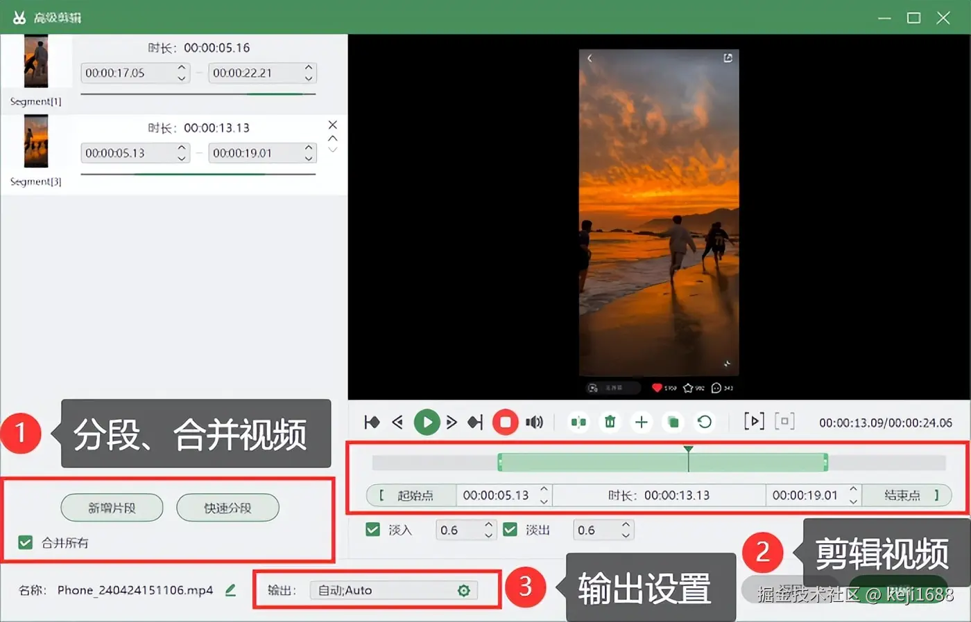 步骤3:录制完成,回到电脑上的屏幕上,我们可以选择 【高级剪辑】 进入,对视频进行分段、剪辑、增加特效和格式转换的后期编辑处理。