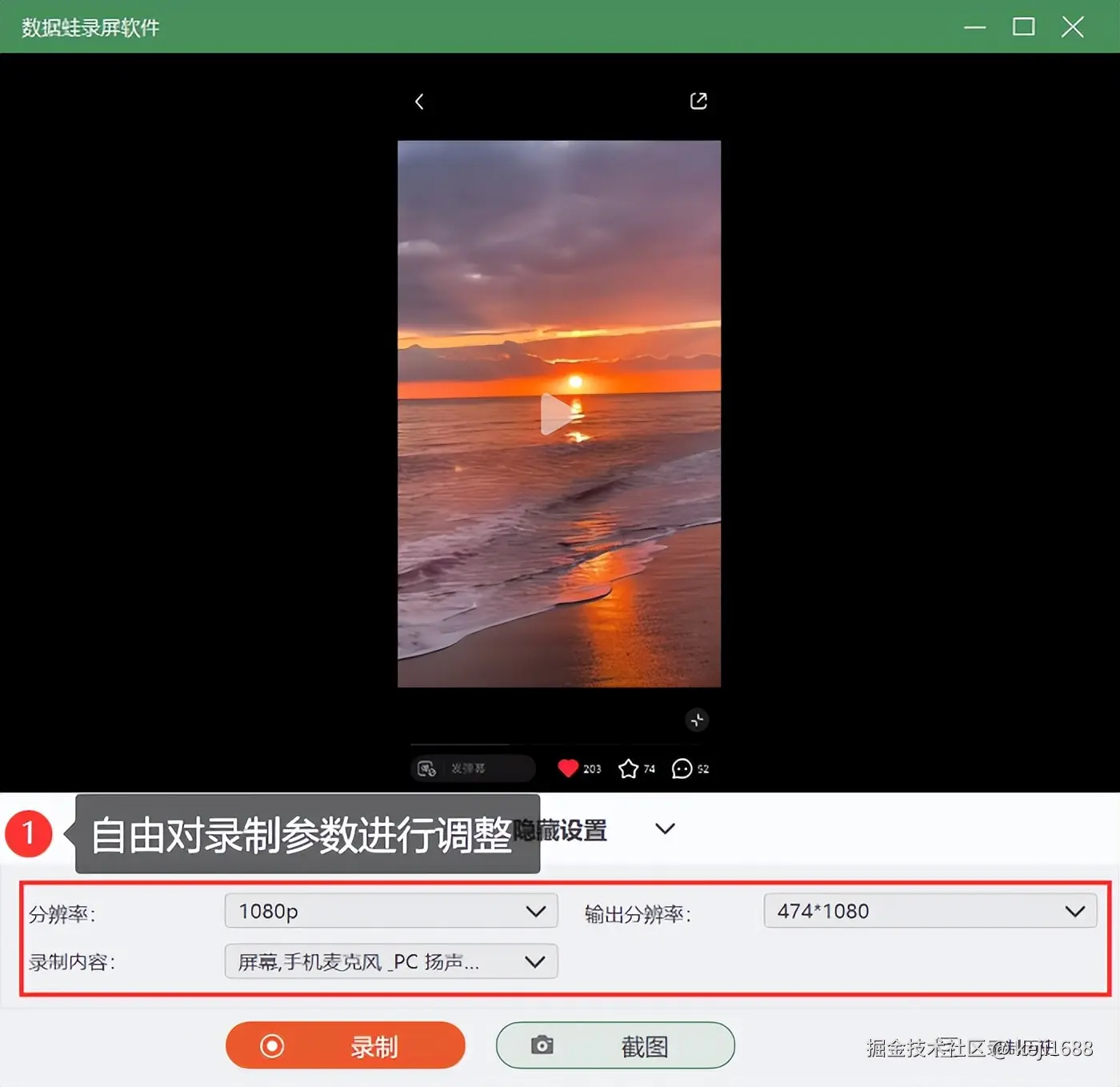 2、自定义录制参数: 可以自行调整录制参数,如分辨率、帧率、音频质量等,让视频更符合你的要求。