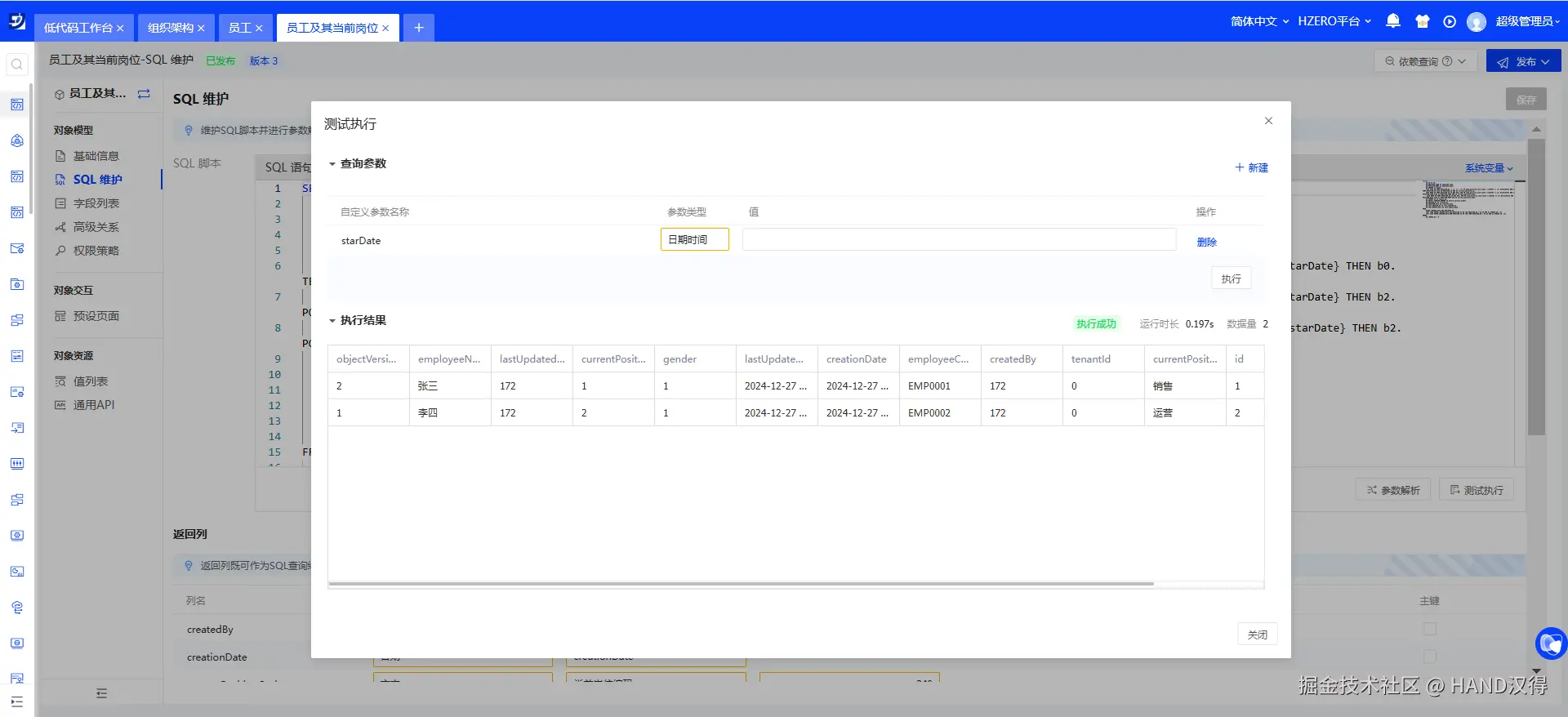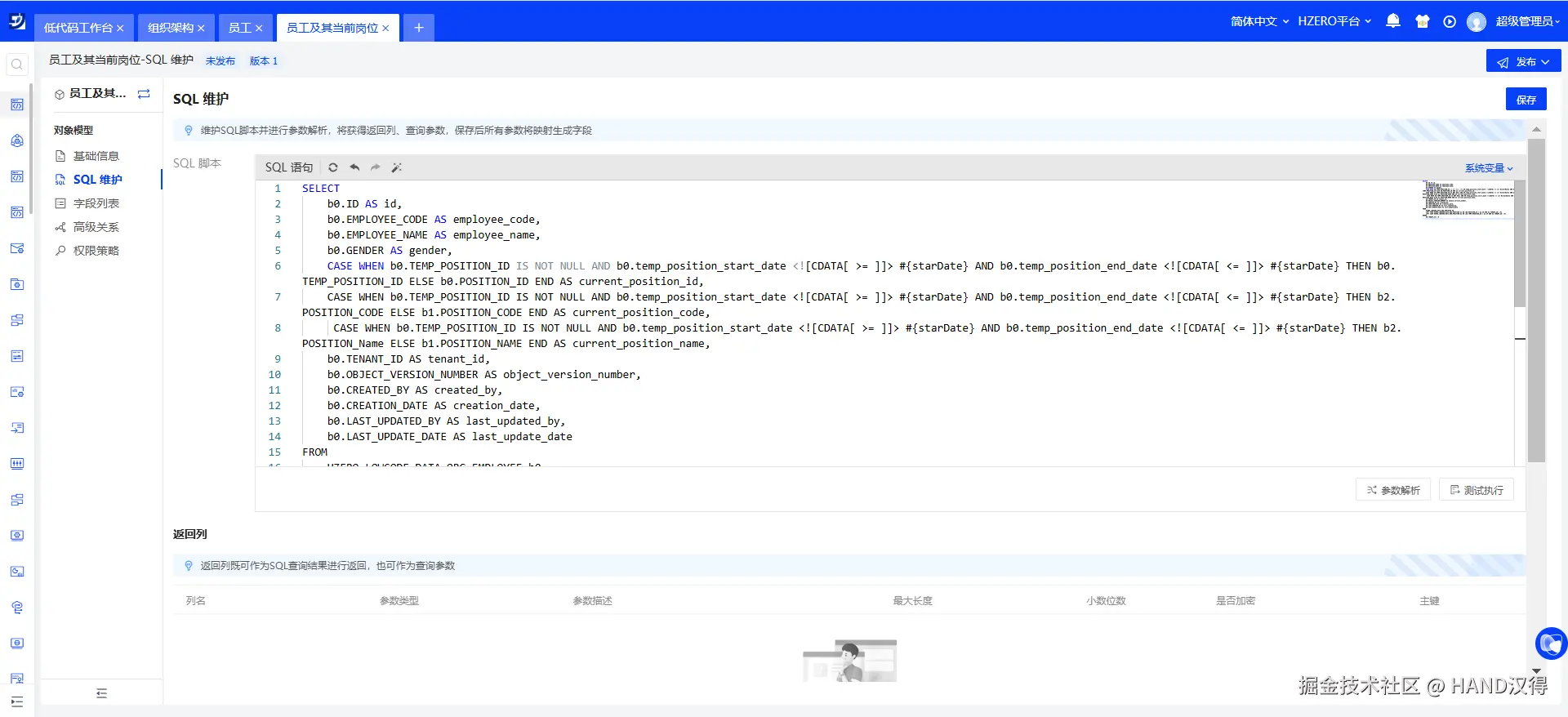 本篇主要围绕根据查询条件动态获取员工正式岗位或临时岗位场景,介绍SQL对象的内容。